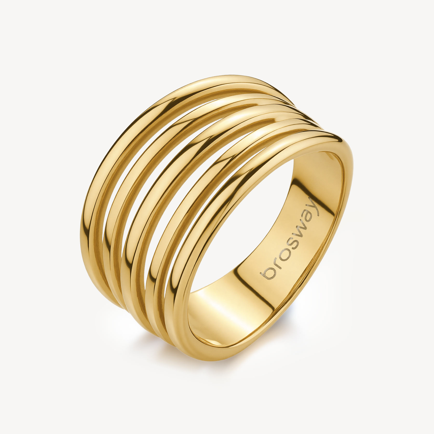 Anello a fascia in acciaio 316L e finitura pvd oro 14K.