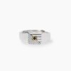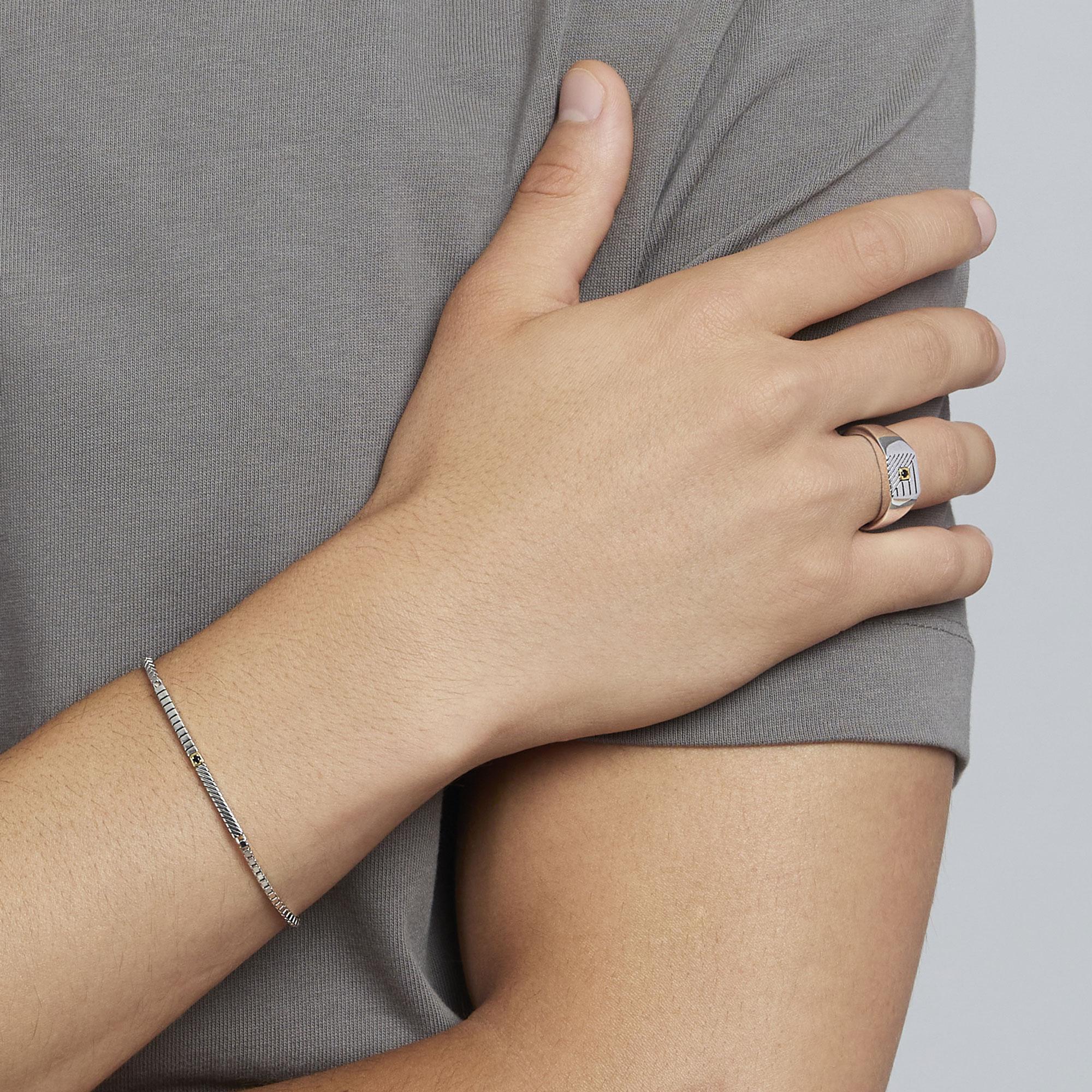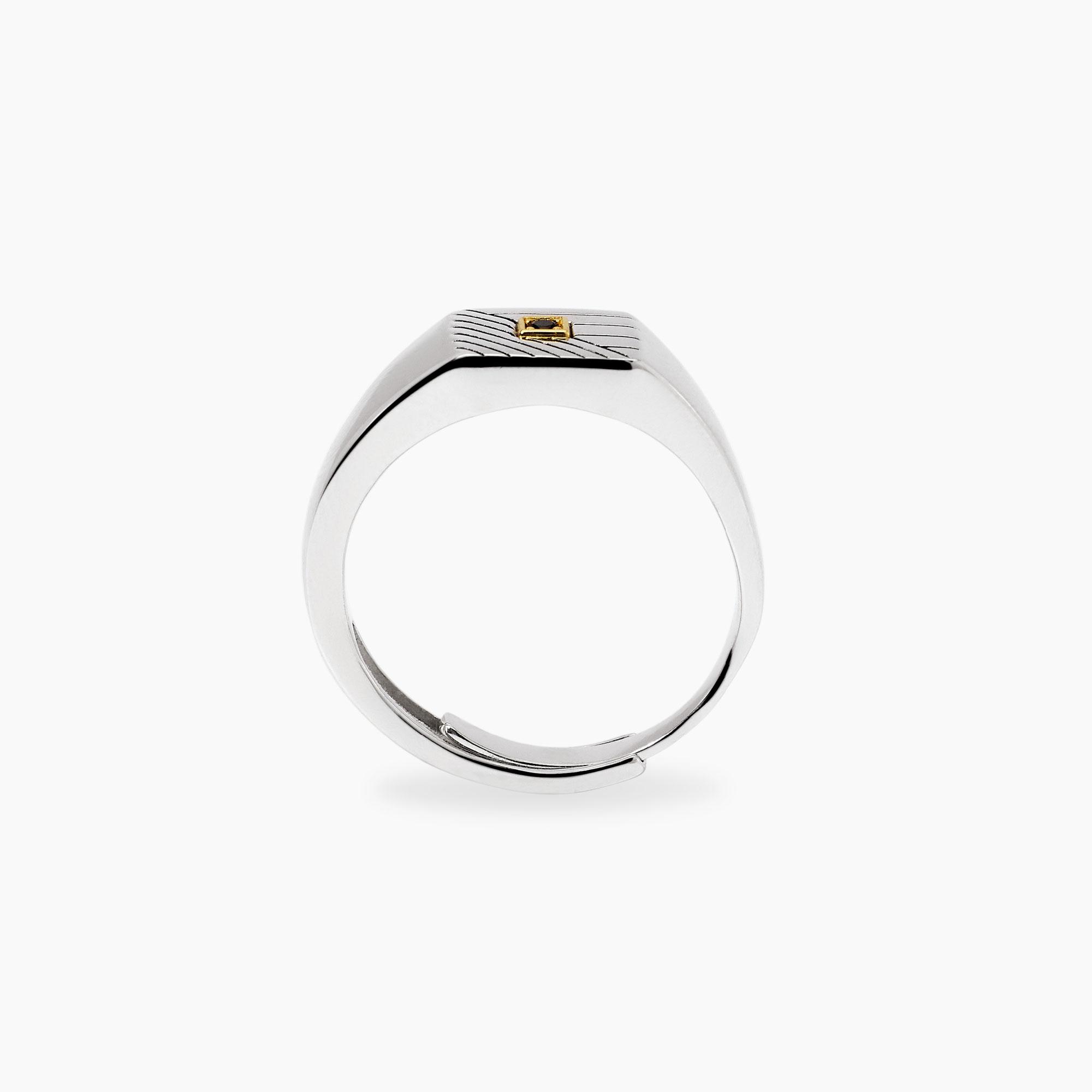 Anello chevalier regolabile in argento rodiato lucido e placcato oro 18K con zircone nero.