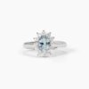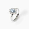 Anello da donna regolabile in argento rodiato con acquamarina sintetica taglio ovale e zirconi bianchi.