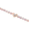 Bracciale di perle rosa con doppio cuore, uno in argento rosato a finitura lucida e uno pavé di zirconi bianchi, per un equilibrio romantico tra calore metallico e brillantezza. La lunghezza di 19 cm assicura una vestibilità confortevole sul polso, mentre le perle (diametro 4/4,5 cm) creano una texture delicata e femminile che valorizza la luce delle pietre. Il ciondolo a cuore misura 0,9 × 0,7 cm e dona un punto luce discreto ma evidente, perfetto per completare sia outfit quotidiani sia look eleganti. Il contrasto tra le tonalità rosate delle perle, l’argento rosato e il bianco intenso degli zirconi offre un effetto raffinato e sempre attuale, facile da abbinare con orologi e altri bracciali sottili. Un gioiello versatile e significativo, ideale come idea regalo per celebrare affetto e momenti speciali, che aggiunge luminosità e personalità a camicie, abiti e maglieria.