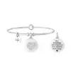 Bracciale da donna di KIDULT, della collezione Love, in acciaio 316L, circonferenza 20 cm, 6 cm con ciondolo tondo in acciaio lucido con cuore e cristalli. Scritta: Our friendship… little things. Dimensioni: tondo 17 mm, cristalli 1.25 mm. La referenza è 732157