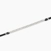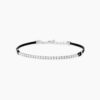 Bracciale regolabile in argento rodiato con cordino in nylon nero e tennis di zirconi bianchi.