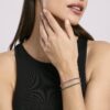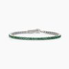 Bracciale tennis da donna in argento rodiato con smeraldo sintetico.