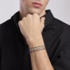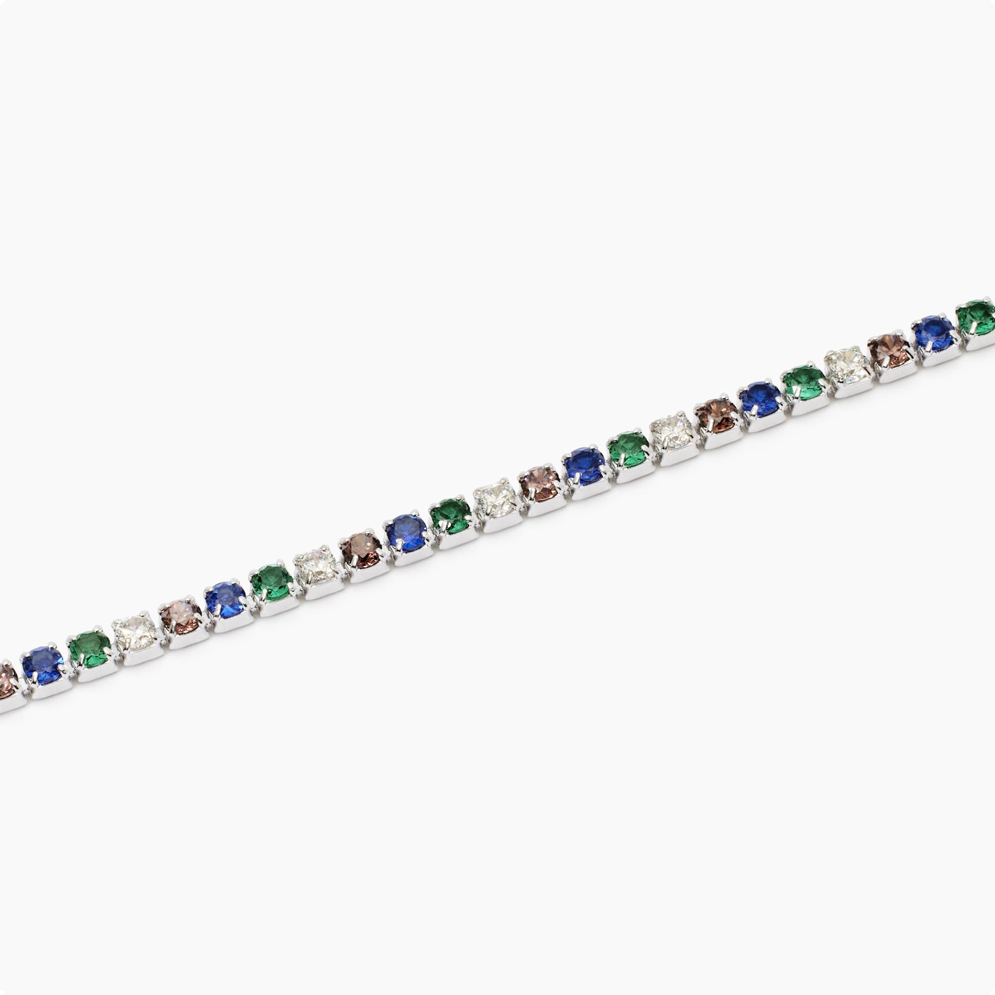 Bracciale tennis regolabile da uomo in argento rodiato con smeraldi e zaffiri sintetici, zirconi bianchi e zirconi marroni.