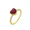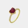 Anello in Argento 925 solitario con cuore in zircone rosso rubino e zirconi bianchi