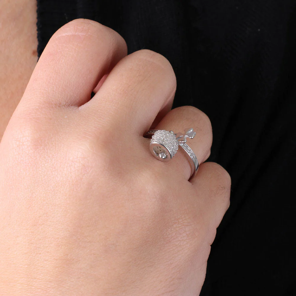 Anello in Argento 925 con campanella portafortuna e quadrifoglio impreziositi da cubic zirconi