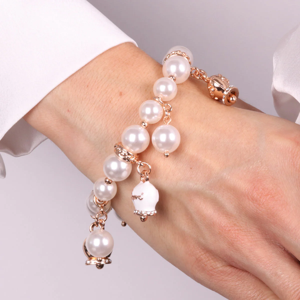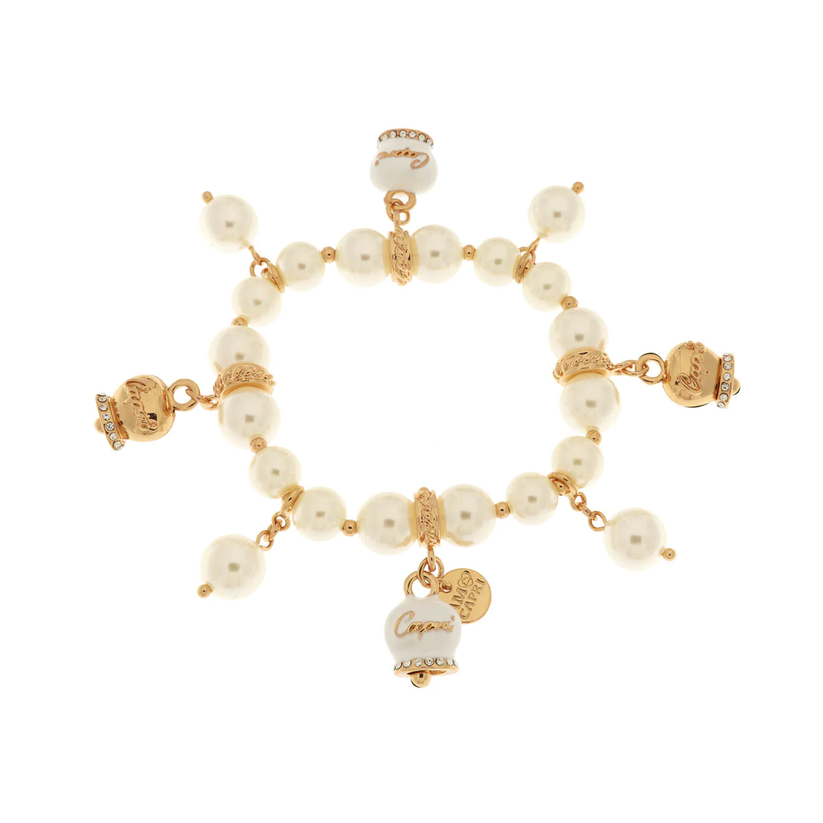 Bracciale in Metallo Bracciale in Metallo con perle e campanelle portafortuna in smalto bianco con scritta Capri