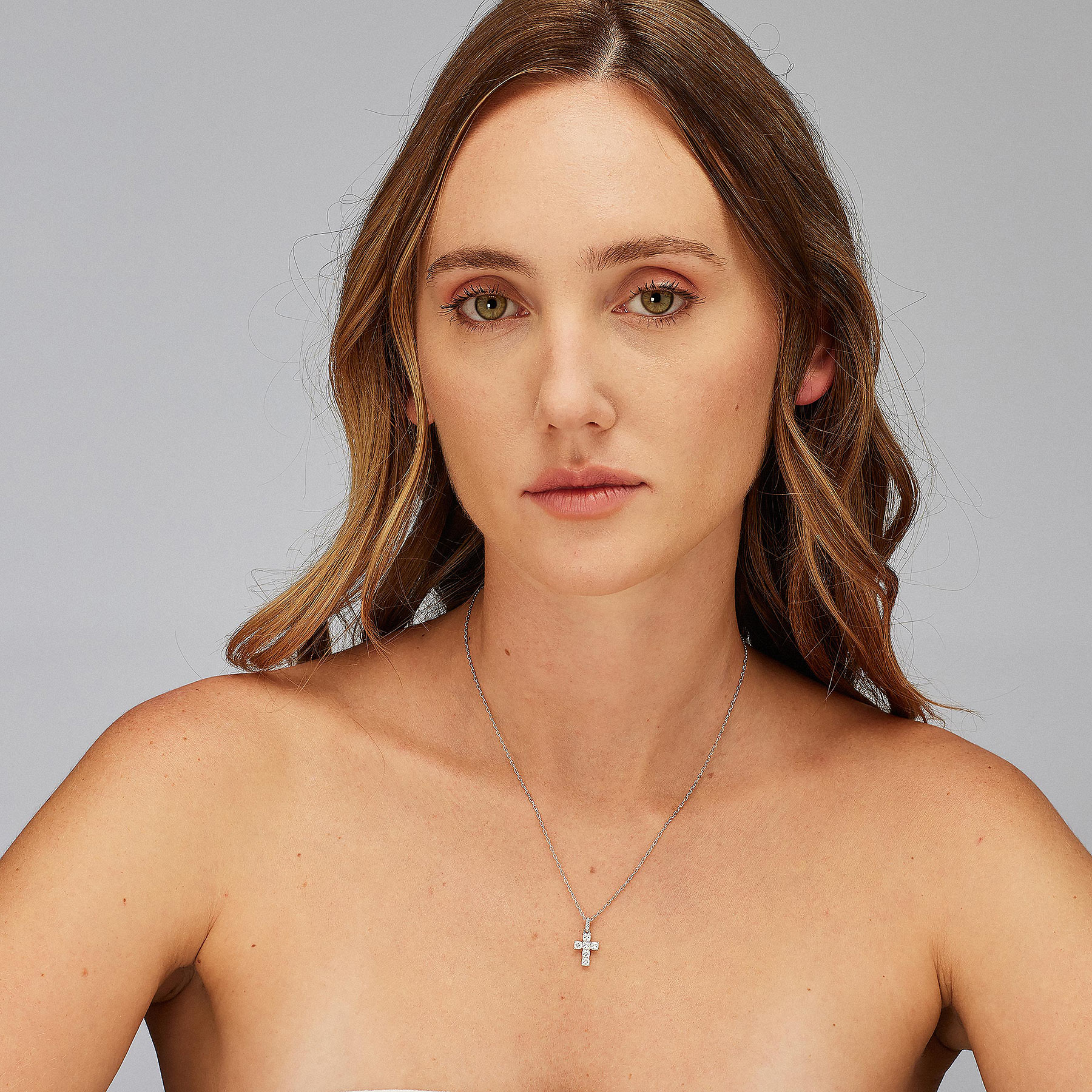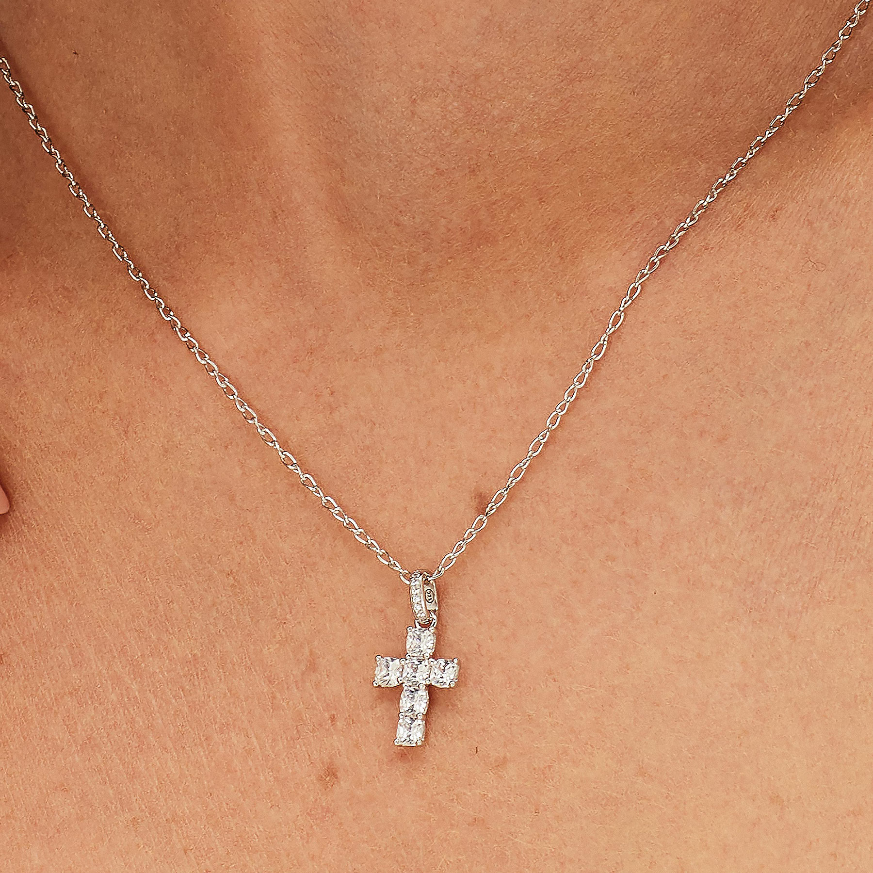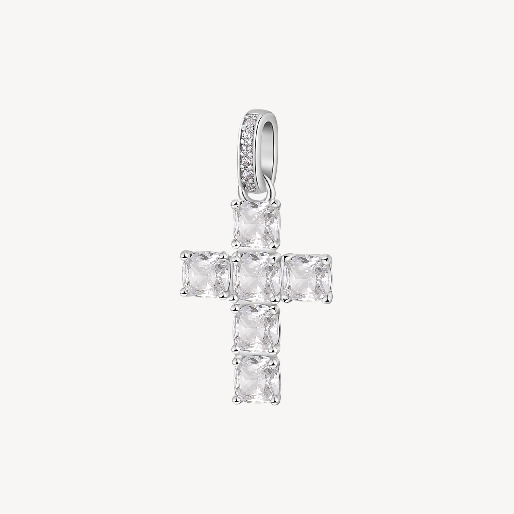 Pendente a forma di croce in argento rodiato 925‰ con cushion cubic zirconia.