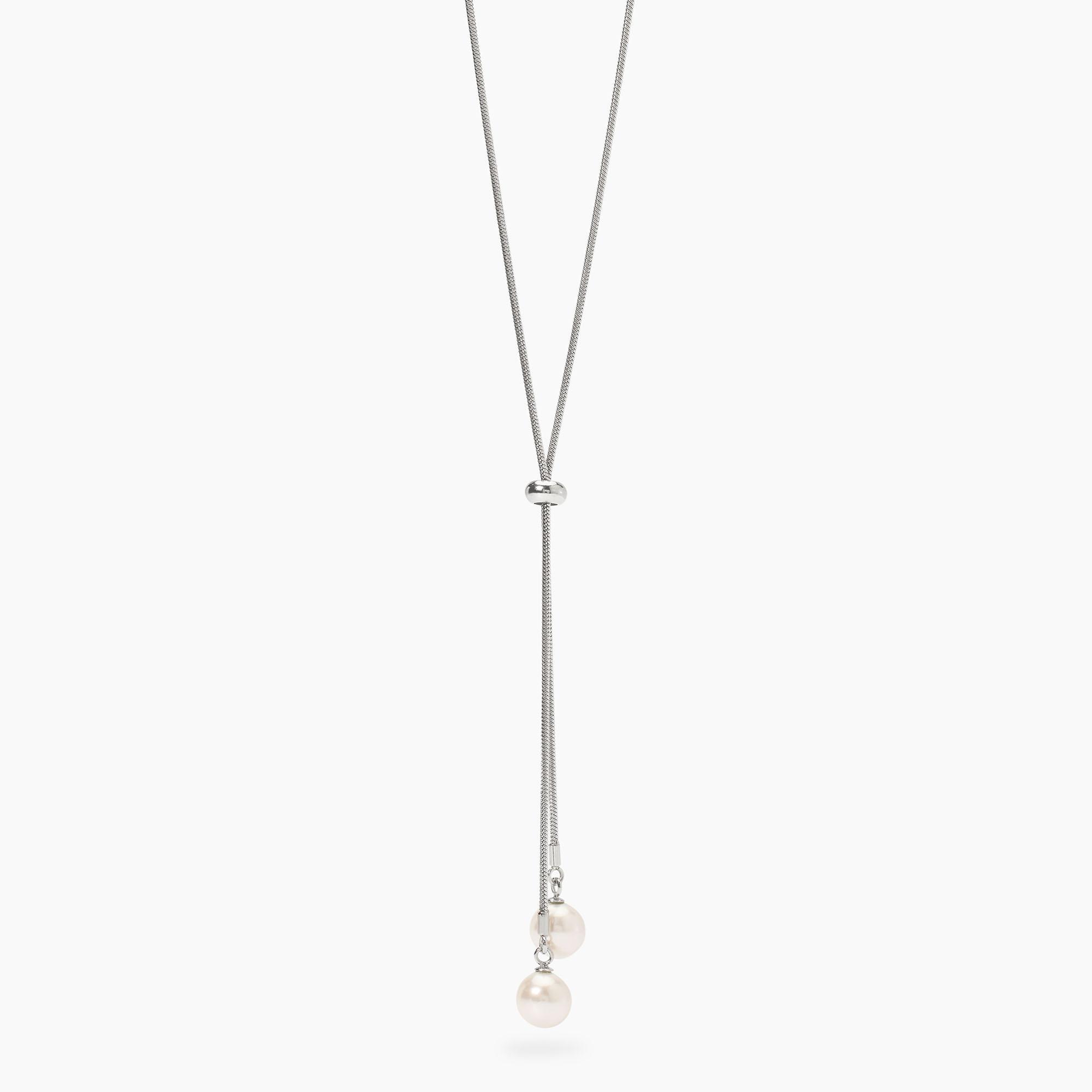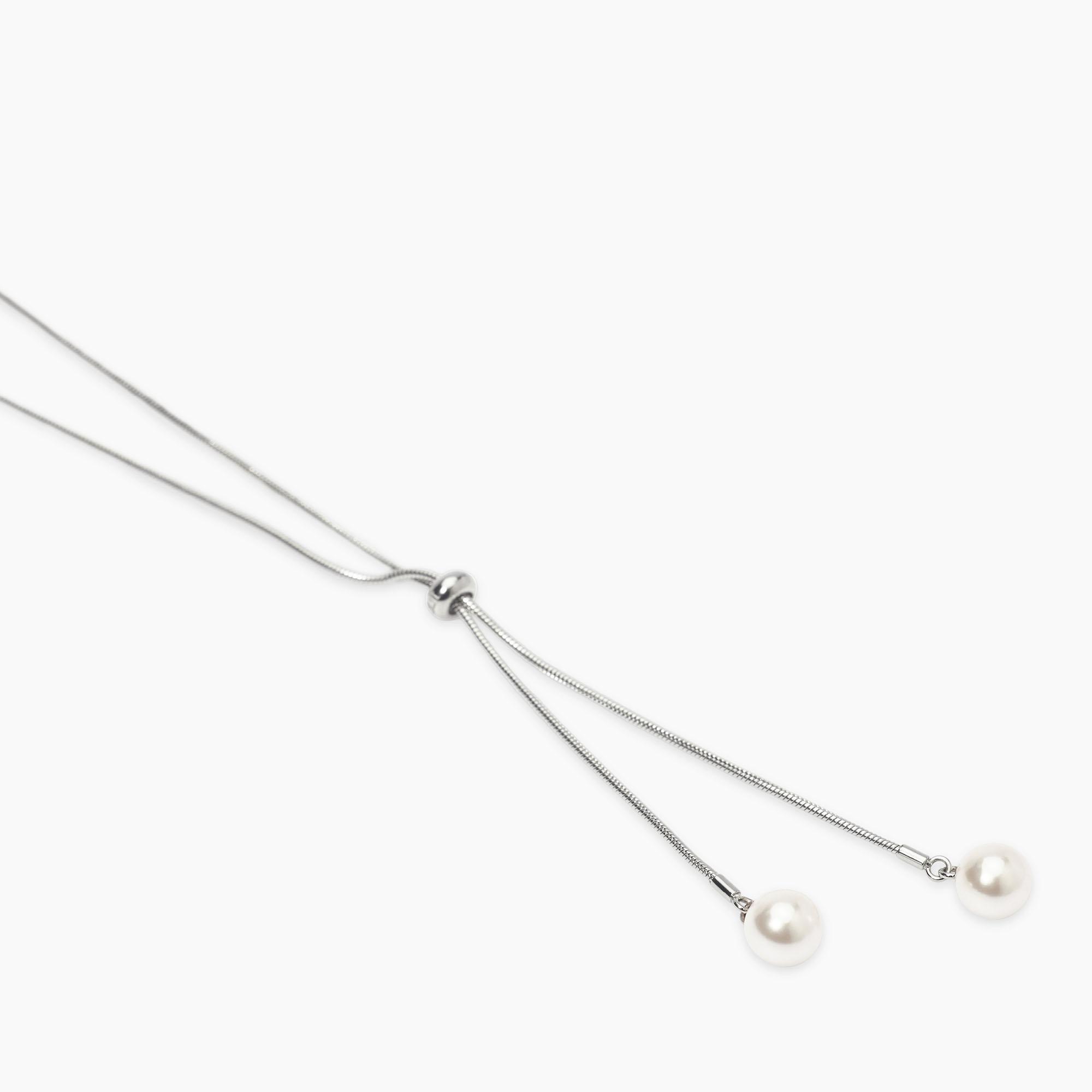 Collana in acciaio con catena snake, slider e pendenti con perle conchiglia.